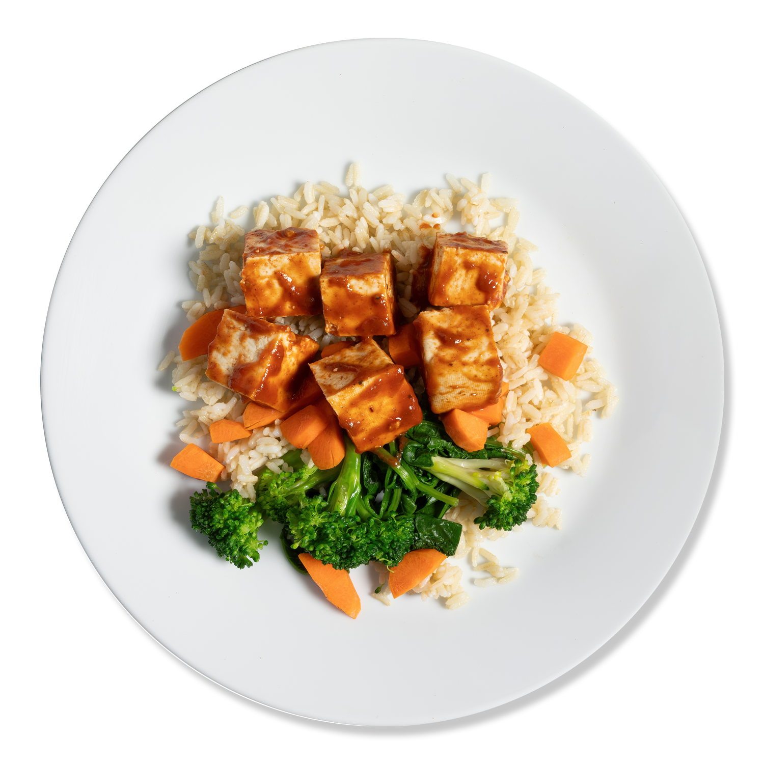 Tofu* [Water, Organic Soybeans, Coagulants(Calcium Sulfate and Magnesium Chloride), Glucono Delta-lactone], Brown Rice, Carrots, Broccoli, BBQ Sauce [Maple Syrup, Water, Tomato Paste*, Apple Cider Vinegar [Pure Apple Cider Vinegar and Water], Kale*, Garlic Infused Olive Oil, Dijon Mustard [Vinegar, Water, Mustard Seed, Salt, Sodium Bisulfite], Tamari Sauce [Water, Soybeans, Salt, Alcohol], Mustard Seed, All Natural Hickory Seasoning [Water, Natural Smoke Concentrate.], Sea Salt, Chipotle Chili Pepper, Smoked Paprika, Cumin, Black Pepper