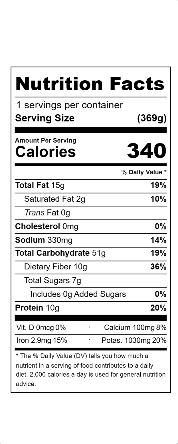Potatoes*, Crushed Tomatoes* [Tomatoes*, Sea, Salt, Citric Acid], Butternut Squash, Fennel, Olive Oil, Onions, Gluten Free Orzo (Corn, Rice), Carrots, Lentils, Kidney Beans, Chickpeas, Kale*, Lima Beans, Chickpea Flour (Chickpeas) Celery , Parsley, Garlic, Basil, Kosher Salt, Black Pepper
