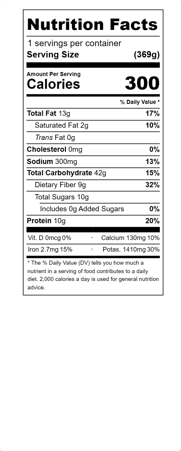 Cauliflower, Mushrooms, Potatoes*, Carrots, Lentils, Fennel, Vegetable Broth(Tomato, Onion, Carrots, Mushroom, Celery, Sugar, Salt, Natural Flavors, Yeast Extract, Xanthan Gum), Onions, Red Wine(Sulphites), Cashew Nuts, Olive Oil , Garlic, Rosemary , Black Pepper, Nutmeg, Sea Salt, Tahini (Sesame Seeds), Smoked Paprika, Spices, Lavender, Sea Salt, Black Pepper